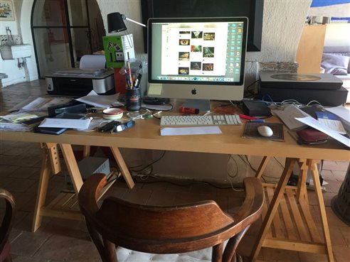 午后,同学们跟随老师来到了著名艺术大师托马索的工作室。一进门,托马索便主动热情的和大家握手问好,并为大家介绍他的作品。大师出生于一个艺术世家,他的家人大都走向了艺术这条路,而他本人在当代艺术中开辟了一片天地。工作室里干净整洁,作品井然有序。往下走两层,摆放了很多用不同材质如铜板、画布、铁等通过不同方法创作的作品,其流畅的线条与漂亮的色彩令实习小组惊叹连连。托马索大师在工作室的后院向大家分享了一些自己对于艺术创作的感想,并表示将来到地大为大家教授铜板画课程。在与大家合影后,他赠送自己的画册给每一位同学和带队老师,并签名涂鸦,给同学们一个大惊喜。