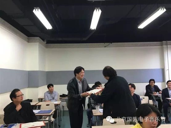 与会期间,赵飞副教授还向教育部艺术教育教学指导委员会的相关领导汇报了我院音乐舞蹈专业MFA的培养情况,并在培养条件、培养标准与考核内容等方面进行了较为深入的交流,与中央音乐学院、中国传媒大学、南京艺术学院等高等院校的电子音乐学科带头人探讨了应用电子音乐的学科发展、资源共享与交流合作等问题,与美国著名的交互电子音乐作曲家---俄勒冈大学音乐与舞蹈学院的杰弗瑞.斯托莱特教授以及台湾电脑音乐学会会长、开南大学的黄志方教授进一步探讨了联合培养的可能性与学术交流等事宜,最后,赵飞副教授转达了赵冰院长的盛情邀请,杰弗瑞.斯托莱特教授同意明年下半年将来我校进行讲学交流。