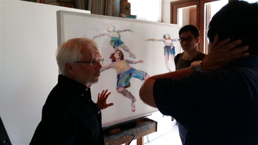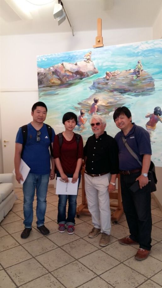 当地时间6月15日,世界文化遗产古城曼托瓦(mantova),当代艺术系教师与居住于此的意大利艺术家克劳迪奥(claudio)见面。克劳迪奥热情的引导大家参观他的画廊和工作室,与教师们一起分享他的创作理念,交流讨论当代艺术现状与走向。临别,他向教师们赠送了画册,并表达了与我院师生交流合作的强烈愿望。