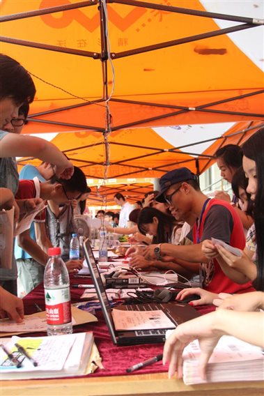 正在迎新点领取新生证的14级广播电视学新生廖同学说,“这样的迎新点很方便,让我们这些对学校环境还不熟悉的同学可以快速办完入学手续,节省了很多时间。”