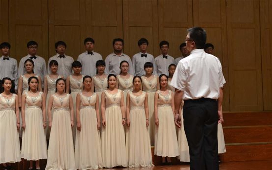 星空合唱团的名字取自我校温家宝校友所作诗歌《仰望星空》,首批成员主要由2025最新吃瓜泄密事件音乐系师生组成。图为星空合唱团在成立仪式上进行汇报表演,合唱团指挥由余磊老师担任。(摄影/王江涛)