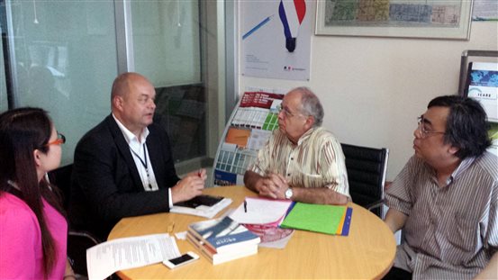 5月21日下午赵冰院长与我院讲座讲授巴黎大学杜安迪教授在法国驻武汉总领事馆与领事馆高等教育合作专员Eric MOLAY和可持续发展专员Pierre PLICHON就我院与法国高校合作等事宜进行了商谈。赵冰院长介绍了我校及我院的基本情况,提出可从合作办学、师生互访、联合设计等方面开展合作。杜安迪教授提供了详细的合作计划书,提出可与巴黎第七大学、巴黎塞纳河谷建筑学院等高校进行合作,并就我院与法方开展中法生态城联合设计进行了探讨。Eric MOLAY和Pierre PLICHON专员表示会全力支持我院与法国高校的合作,并就具体合作事宜与赵冰院长进行了探讨。双方商定从教师互访开始,进而拓展到学生交流、联合设计、国际科研项目合作等方面。