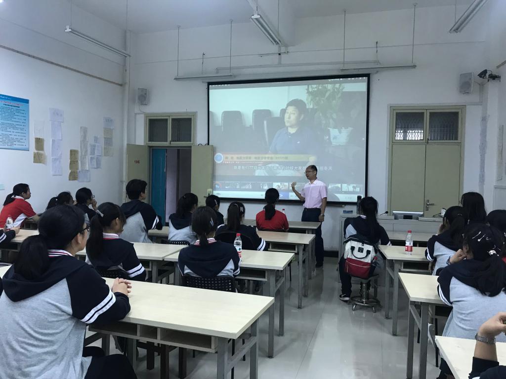 最后,在1106教室,方浩老师为同学们展示了他和团队所制作的优秀科教实践作品。视频通过恢弘的镜头及精良的特效,普及科学知识并传递科学精神。方老师为同学们介绍了学院的基本情况和办学理念,教导同学们养成良好的学习、生活习惯,树立正确的三观,期待同学们有机会就读地大艺媒学院。