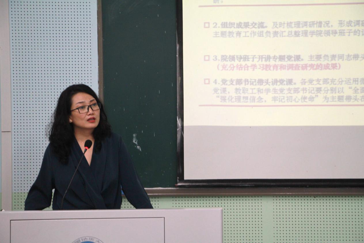 副院长张梅珍强调了“不忘初心,牢记使命”主题教育活动是党中央重大决策部署,希望各位党员按照学院党委制定的工作方案明确工作任务,扎实开展学习教育,以主题教育的实践成果推动学院的事业发展。