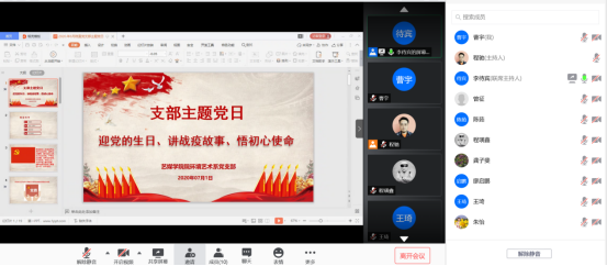 各教工党支部分别通过腾讯会议开启在线集中学习。视觉与媒体设计系党支部学习了省委十一届七次全会精神,高校基层党建“四个一”行动要求,分享了疫情防控斗争中的感人事迹。新闻传播系党支部为6月份入党的党员集体过“政治生日”,并献上生日纪念卡。党支部书记尚媛媛讲授“党旗飘扬构建红色防火墙”专题党课,总结了新闻传播系师生的抗疫行动。全体党员一致认为,应发挥专业特长,以专题片的形式记录抗疫所感。景观学系党支部书记李待宾以微党课的形式带领党员同志学习党史,围绕疫情期间身边故事开展主题讨论。音乐系党支部三名党员同志讲述了参与抗疫的亲身经历,体现出共产党员的奉献与担当。院直党支部观看“党章”视频、PPT讲解、支部书记李伟娜作“用实际行动书写初心与使命”的微党课,党员同志分享了亲身经历的感人事件。通过学习与交流,党员同志纷纷表示更加坚定初心如磐,使命在肩,以新担当和新作为向建党99周年献礼。