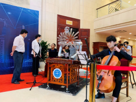 “海百合”是我院周莉副教授带领的音乐科技团队自主研发的智能音乐情感机器人,具有12个自由度双机械臂,是目前我国音乐机器人领域智能化程度最高的成果之一,已具有基于音乐情感计算的智能识谱、智能作曲和智能演奏三大主要人工智能技术优势。这些人工智能成果涵盖音乐科技、控制科学与技术、作曲与作曲技术理论、机械制造自动化等多专业领域的交叉研究,在科普教育、乐器检测、艺术表演、音乐教育、音乐创作以及娱乐服务等多个领域有着广泛的应用前景。
