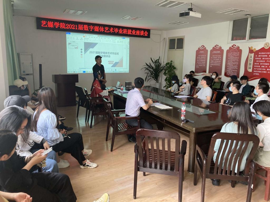 5月28日下午,我院党委副书记吴仁喜老师主持召开2017级数字媒体艺术毕业班就业座谈会,2009届院友、武汉超方体信息技术有限公司总经理刘士超受邀参加座谈会,2017级数字媒体艺术毕业班约40名毕业生参与。