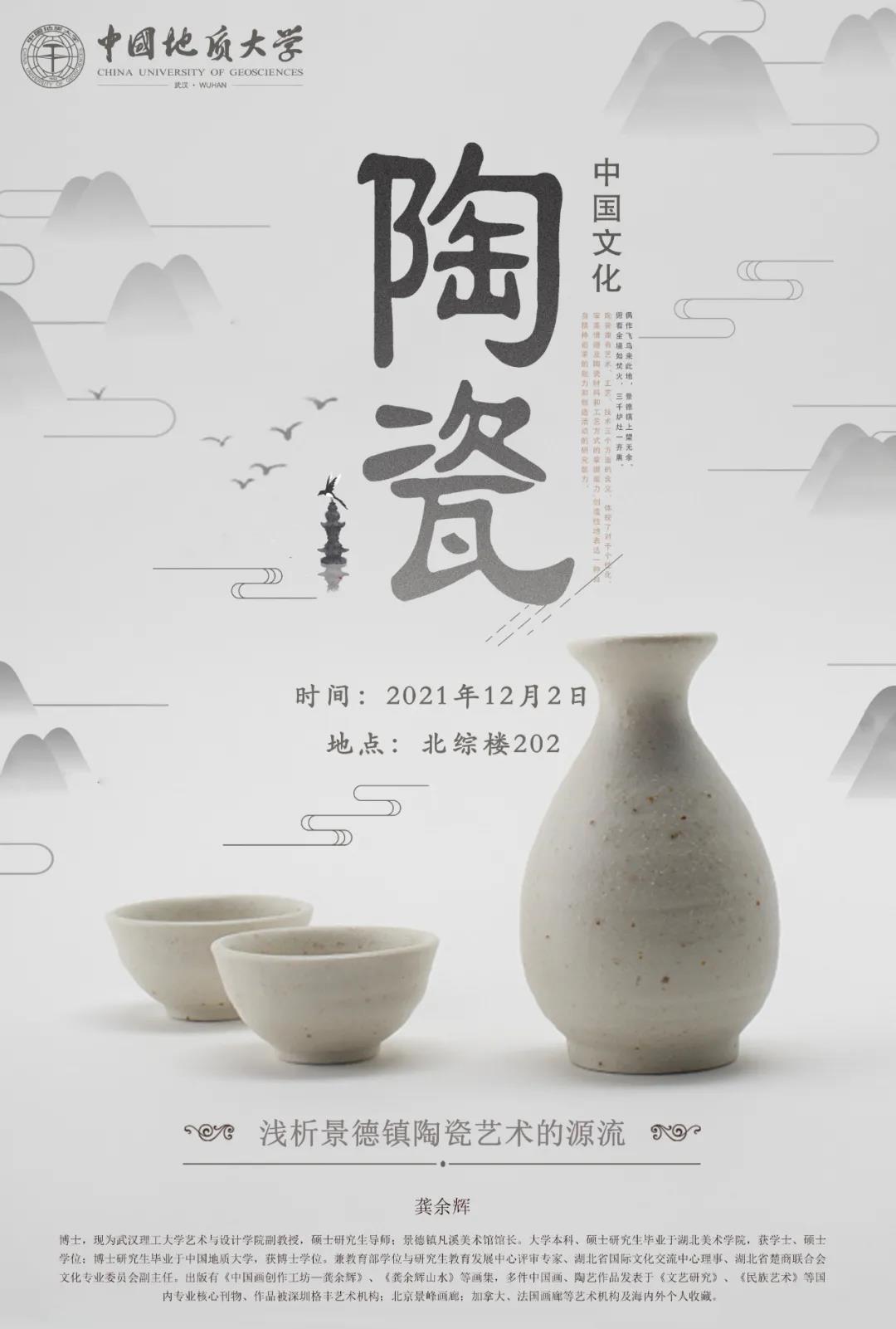 本次讲座,龚老师以“浅析景德镇陶瓷艺术的源流”为题,讲解了陶和瓷的区分和历史,概述了景德镇及其陶瓷的发展和现状,并在最后展示了自己创作的陶瓷作品。本次讲座对同学们深入了解中国陶瓷文化、提升文化自信具有极大的促进作用。