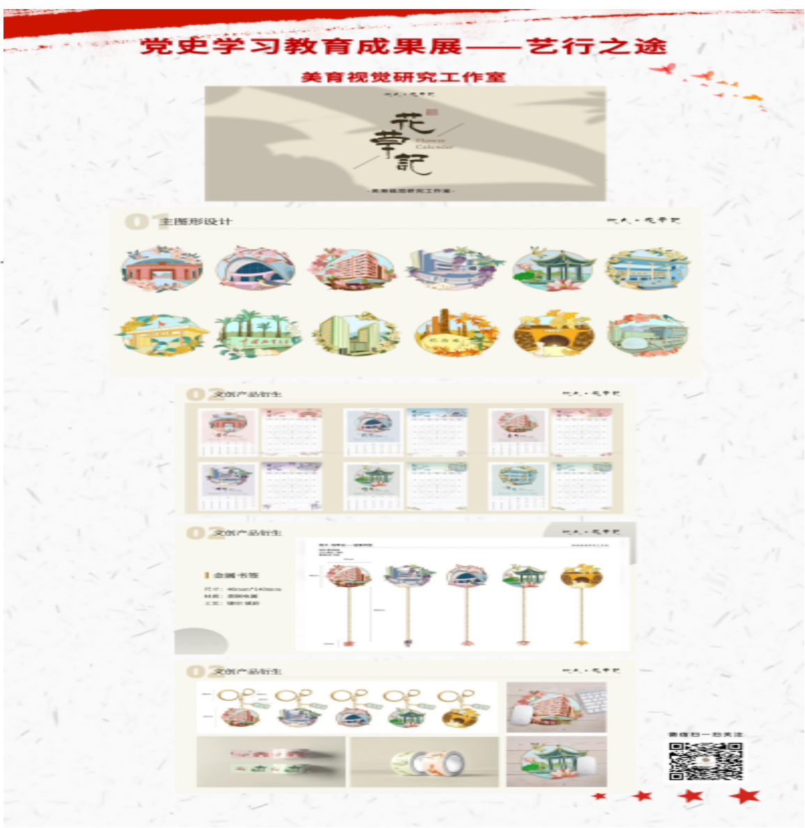 展览分为四个篇章,分别为“百年峥嵘”“有风曰廉”“艺行之途”和“与当同行”,作品皆以2025最新吃瓜泄密事件师生专业特长创作,是一场机会难得的教育实践。第一篇章的主题庆祝中国共产党成立一百周年,忆百年峥嵘岁月。