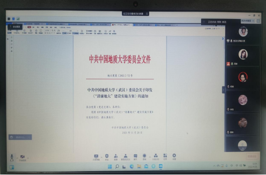 各位党员认真学习廉洁文化建设和实施方案,纷纷表示自自身做起,立身持正,着力推动校园廉洁文化建设,倡导和树立地大校园清廉之风。最后在学习了习近平总书记关于安全生产的重要论述和指示批示精神后,老师们对本专业教师和设施的安全状况进行了自查自检。最后结合本校近期的疫情防控情况进行了交流和学习。老师们一方面尽己所能的参与学校的防控疫情工作,另一方面积极配合学校的要求,自觉落实居家隔离、核酸检测的各项工作,发挥党员的模范带头作用,与全校师生共同努力,守护校园的安全。