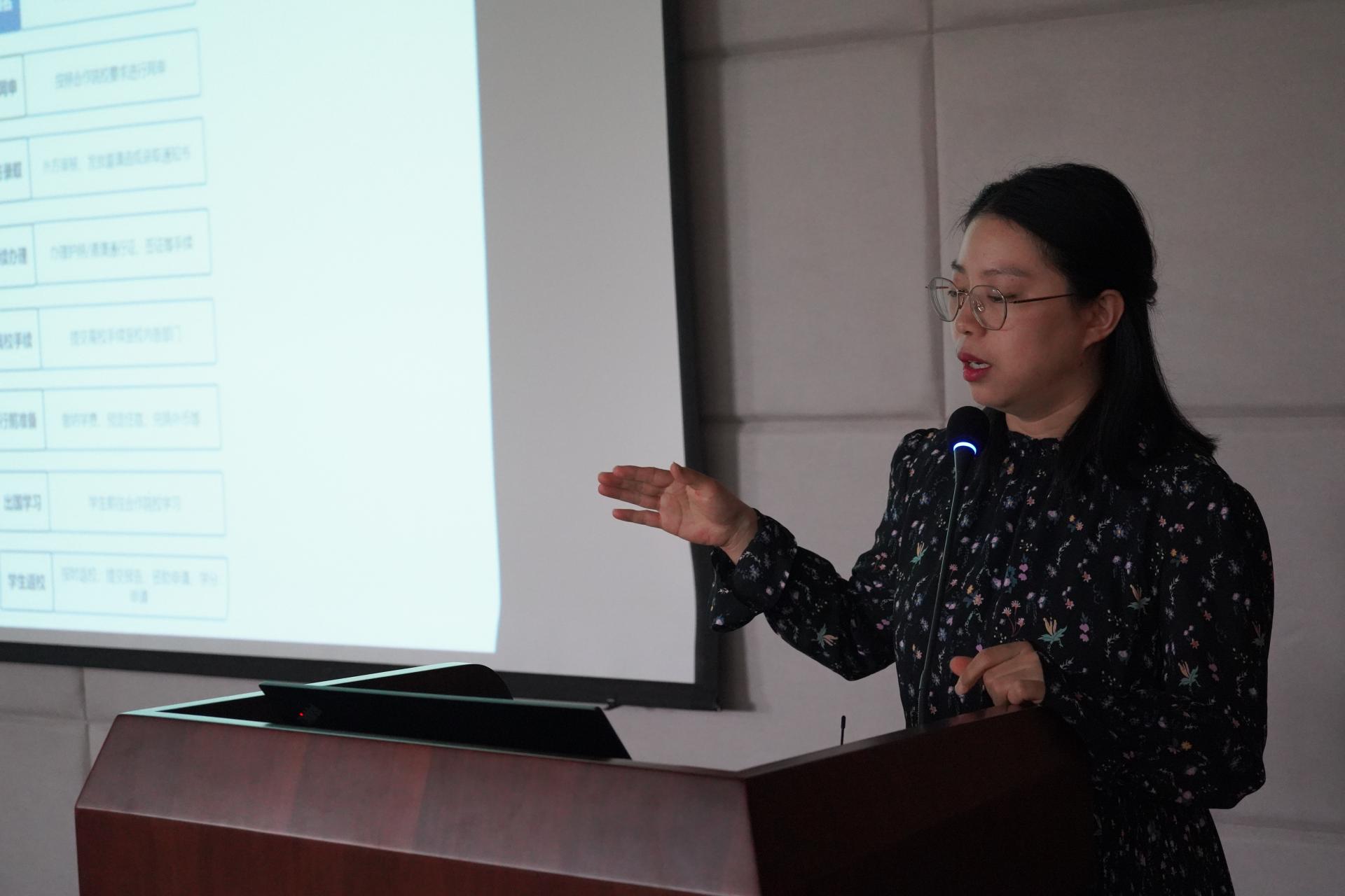 宣讲会上,赵安琪老师介绍了我校国际教育学院的基本情况,海外/境外交流学习项目,分享相关案例,还就学生如何利用好国际交流学习机会提出了建议。接下来,李雅莉老师具体介绍了国际交流项目的申请流程、注意事项,精彩案例分享等,李老师指出参与国际交流不仅仅能提升学业成绩,也能助力学生开阔眼界,做好人生规划。