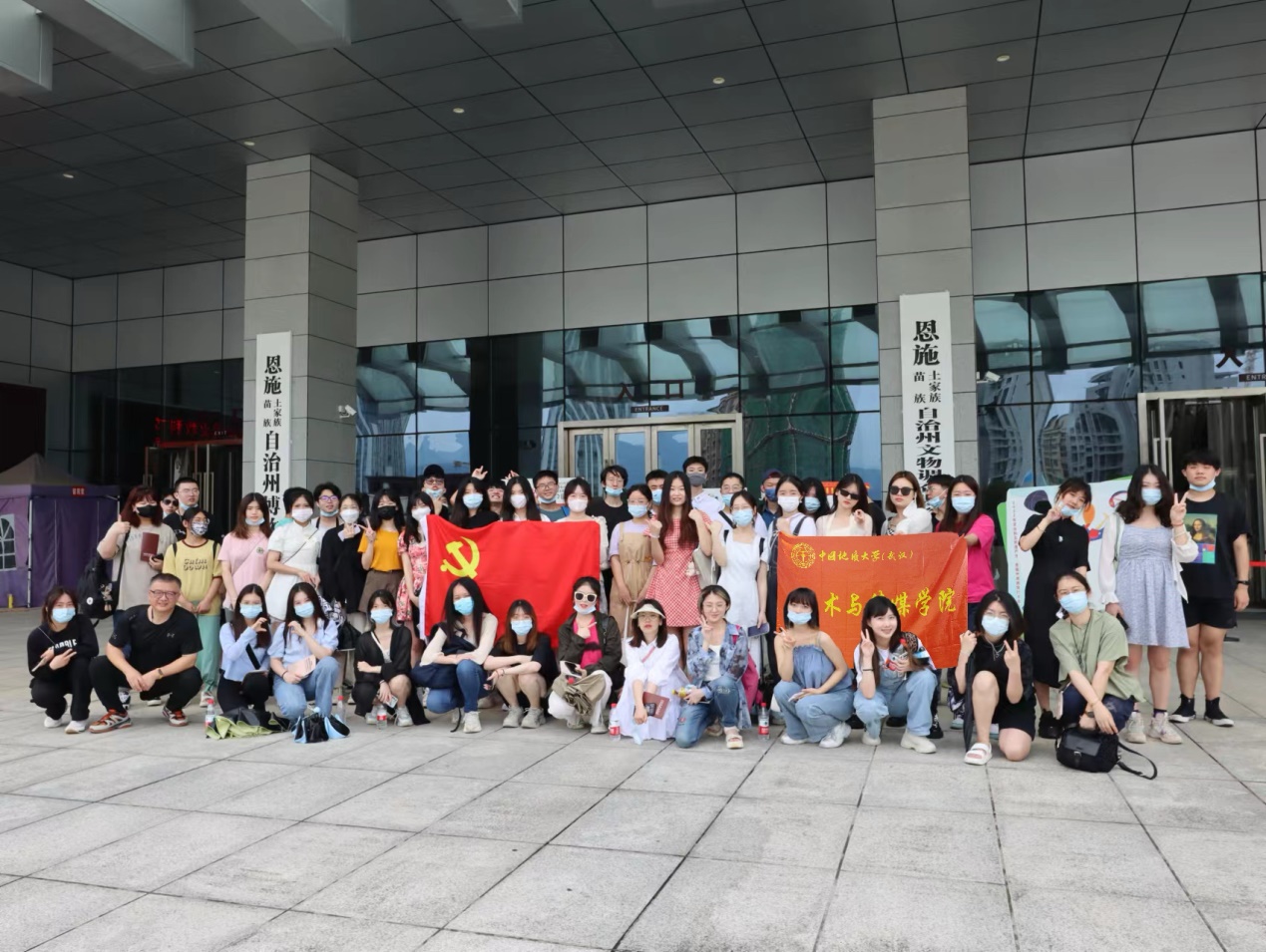 最后我们来到了恩施土家族苗族自治州博物馆,讲解员带领我们从历史出发,了解巴文化及土家文化,从出土的文物到土家族、苗族的吃、穿、用、行等方面,重点反映恩施州各民族创造的丰富而又绚丽多彩的民族民俗文化。例如吊脚楼,土司城,西兰卡普等,无不充分展示了其民族特色。参观完后,我们来到了最终参观的展厅,“恩施记忆”,其陈列由山雨欲来、辛亥惊雷、星火燎原、抗战烽火、解放之路等五个部分组成。陈列的史实资料、视频、实物详尽地记录下了恩施从鸦片战争到新中国成立近百年间的的历史风云进程。同学们在这当中受到了党史教育,让大家牢记“不忘初心,牢记使命”。