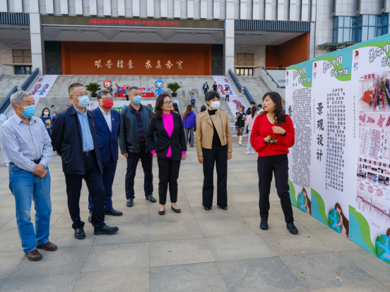 储祖旺部长宣布“南望未来 艺熠生辉”百场文艺展演暨“美丽中国·宜居地球”艺术作品展正式开幕后,嘉宾与现场200余名师生共同进入展区观展。