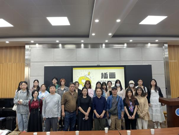 讲座开始之前,由学院副院长杨喆简单介绍主讲人:朱求真老师在学术方面有自己独到的见解,在插画师同企业协作、插画企业活动等方面有大量的工作经验,有着丰富的一手数据和资料。
