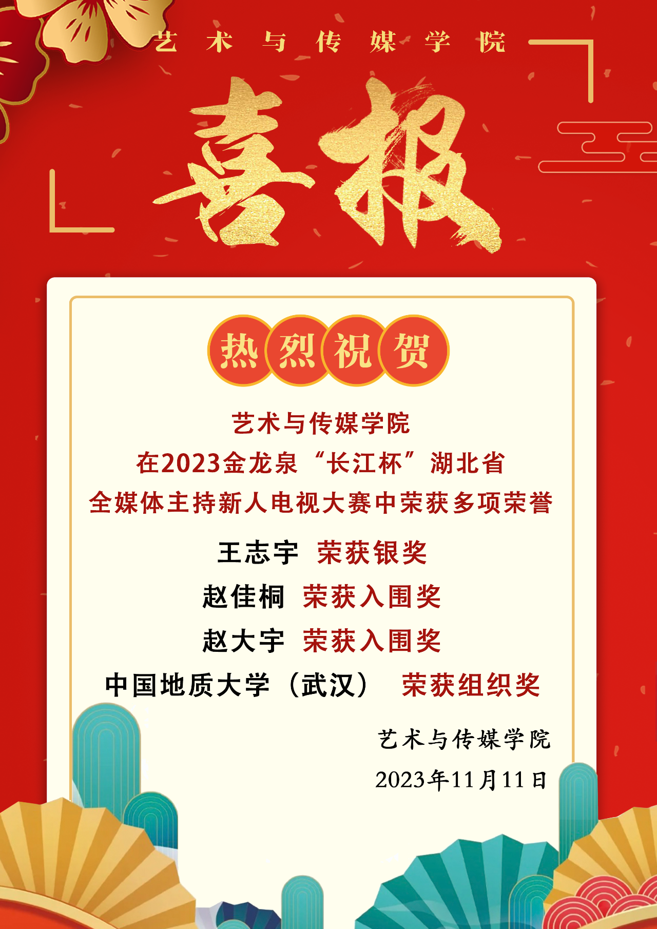 喜报!我院在2023金龙泉“长江杯”湖北省全媒体主持新人电视大赛中荣获多项荣誉!