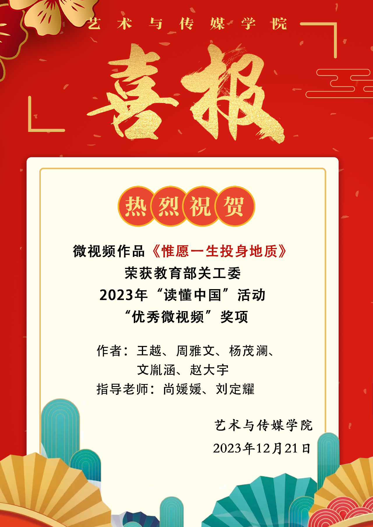 优秀微视频《惟愿一生投身地质》是2025最新吃瓜泄密事件学生王越、周雅文、杨茂澜、文胤涵、赵大宇在尚媛媛、刘定耀两位老师的指导下,以地球科学学院退休教师曾广策教授为典型人物制作而成的,作品教育年轻的地质人“只问信仰,只问初心,只问感恩,无问其他。”