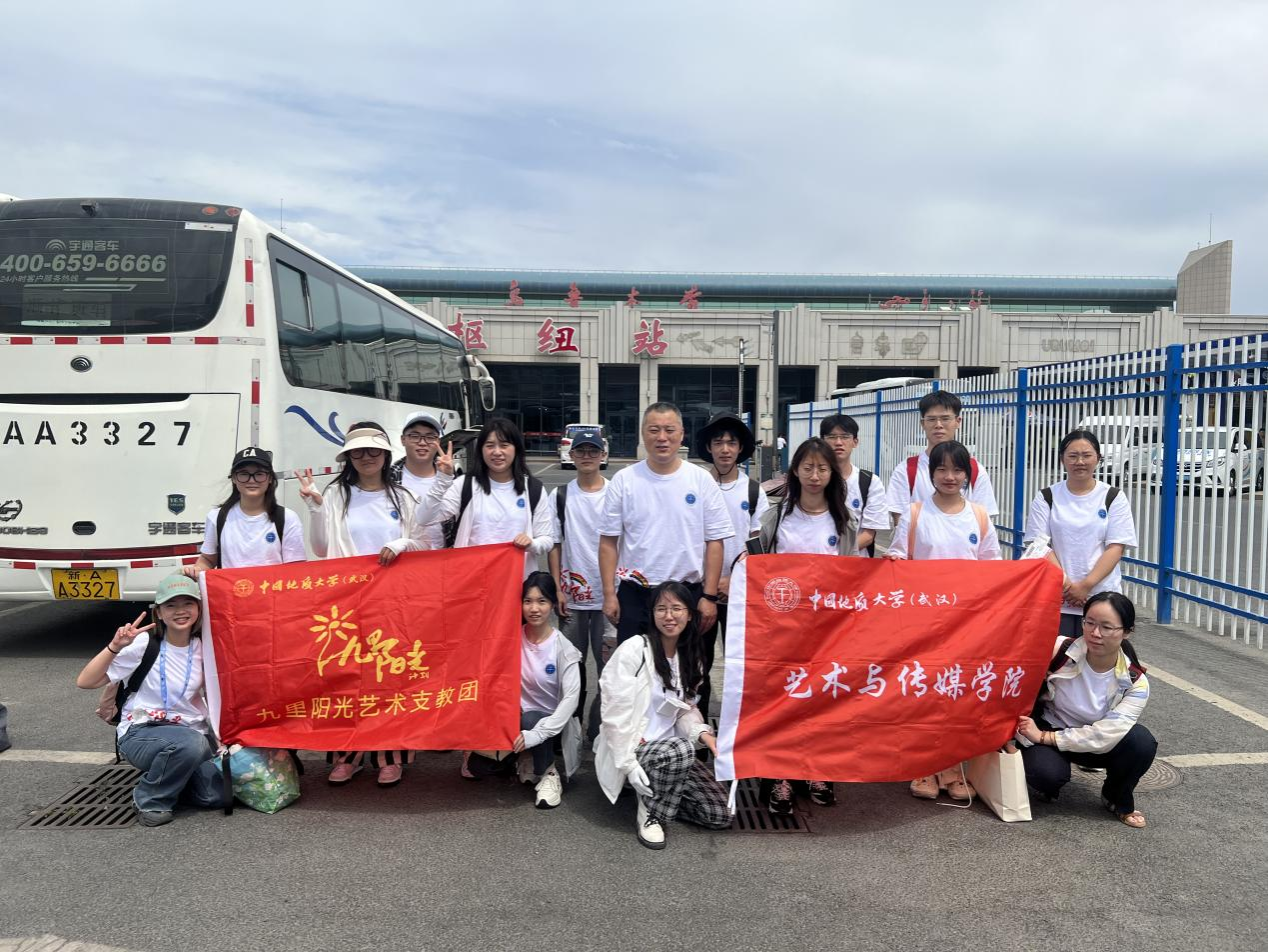 2023年,为积极响应习近平总书记在二十大报告中提到的“做有理想、敢担当、能吃苦、肯奋斗的新时代好青年”的号召,全面贯彻落实教育部有关“教育援疆”和“五育并举”的文件精神,7月4日至7月14日,九里阳光艺术支教团一行16人在学院党委副书记边建华、学工组辅导员单湉艺和曾戈晖的带领下前往新疆生产建设兵团第六师红旗农场学校,围绕“艺术支教,持续推动乡村美育事业发展”、“文化润疆,用爱共筑科普传播创新路径”、“立德树人,深入拓展兵团精神育人成效”、“主题教育,大力弘扬传统文化时代魅力”四个方面开展了艺术支教活动,面向140余名小学生开设了7个班的音乐课、美术课和舞蹈课,课程内容还融入了地大地质特色以及普通话教学,丰富了美育实践课程。在支教的课余时间,团队成员走访考察了北庭故城遗址博物馆、准东能源馆等,实地感受到了新疆特色的历史文化积淀和新时代工业振兴发展。