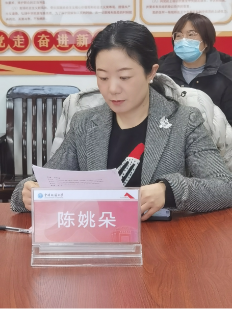 △陈姚朵宣读中国地质大学(武汉)书法协会章程