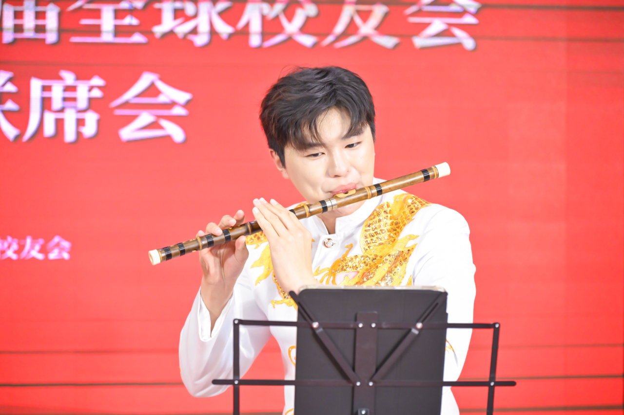 在晚宴环节中,老师和同学们倾情演唱,用艺术的感染力将现场的氛围推向高潮。中国地质大学(武汉)校友会副会长傅安洲和学院副院长袁玥共同演唱了歌曲《鼓浪屿之波》,同时袁院长在全场观众的热情鼓舞下即兴演唱了歌曲《我心永恒》。我院学生张阿雪、钟爱源、韩宏民、冀昱臣分别上台表演了舞蹈《大渔》、笛子与二胡重奏《青花瓷》。师生们婉转的歌声、曼妙的舞姿、动听的民乐演奏收获了在场观众的阵阵掌声,发挥自身的专业特长为校友们奉上了一场精彩的视听盛宴。
