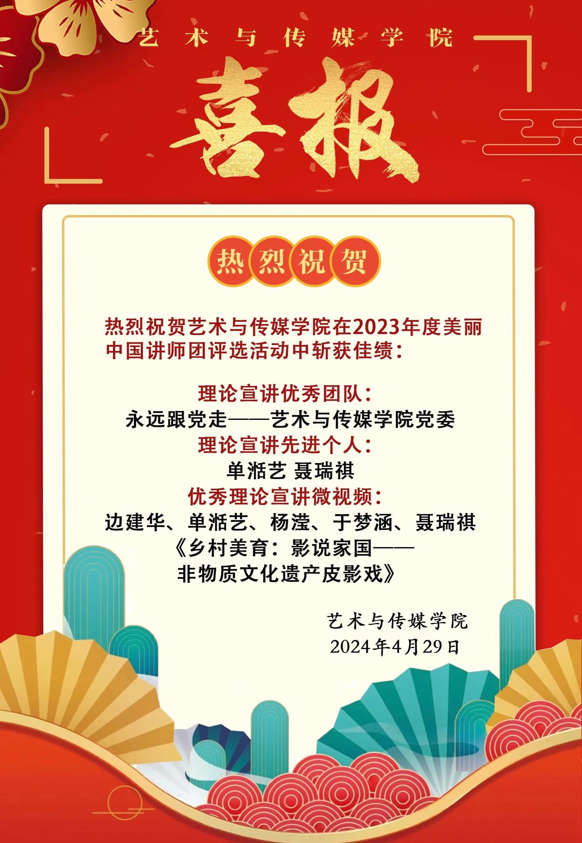 喜报 | 热烈祝贺我院在2023年度美丽中国讲师团评选活动中斩获佳绩!