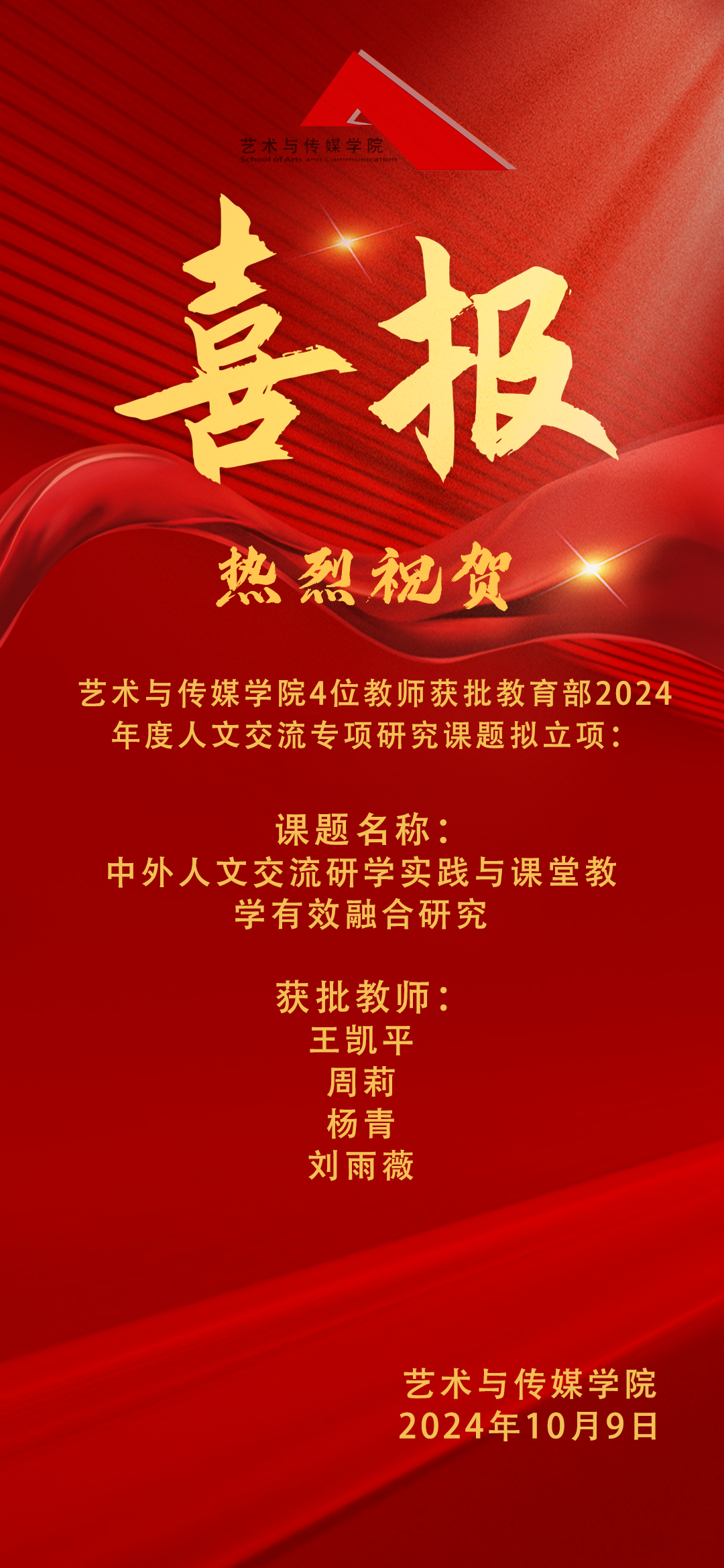 喜报|热烈祝贺我院4位老师获批教育部2024年度人文交流专项研究课题拟立项!