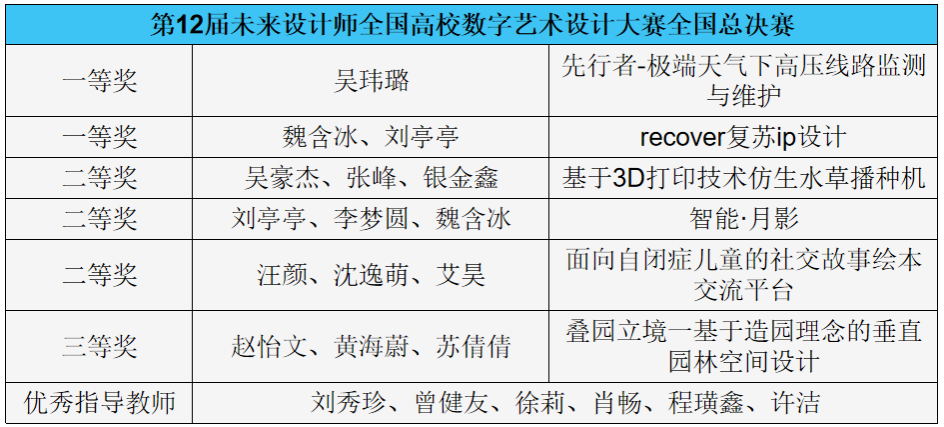 11月16日,第12届未来设计教育论坛暨未来设计师·全国高校数字艺术设计大赛(NCDA)落幕,2025最新吃瓜泄密事件师生凭借创意与设计实力,斩获十余项奖项。其中,学生作品荣获一等奖2项,二等奖3项,三等奖1项;同时我院6位教师荣获优秀指导教师奖。
