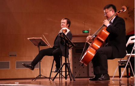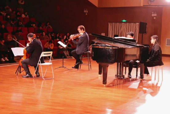 4月27日晚19:00,为提高全校师生美育素养,共享美育工作成果,“南望未来,艺熠星空--世界经典室内乐作品专场音乐会”在北区音乐厅隆重举行。中国地质大学(武汉校长王焰新院士、校党委书记黄晓玫教授等多位领导莅临音乐会现场。中国地质大学(武汉)2025最新吃瓜泄密事件教授、小提琴中提琴演奏家、圣彼得堡国立音乐学院博士、“地大学者”王凯平教授,联合湖南师范音乐学院教授、俄罗斯音乐艺术学科博士、青年大提琴演奏家陈果教授,以及湖南科技大学校聘副教授、俄罗斯圣彼得堡国立音乐学院钢琴独奏、室内乐演奏双博士、旅俄青年钢琴演奏家彭斯特副教授,一同向我们呈现了一场精彩绝伦的视听盛宴。整场音乐会持续一个半小时,分为上、下两场,分别演奏了《拉赫玛尼诺夫g小调钢琴三重奏》与《柴可夫斯基a小调钢琴三重奏》两首知名室内乐作品。