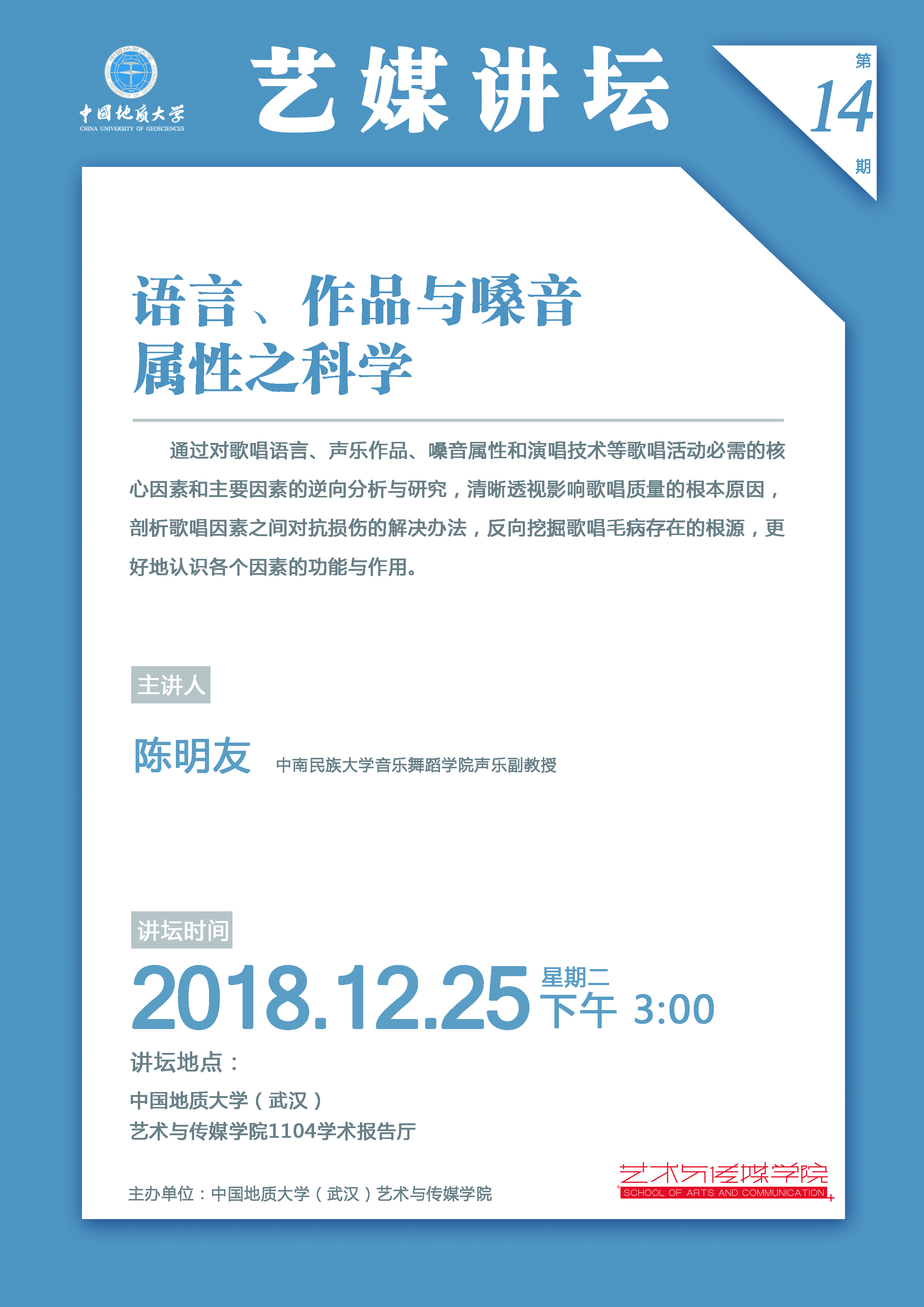 [2018年12月25日]艺媒讲坛(14期):中南民族大学音乐舞蹈学院陈明友副教授学术报告