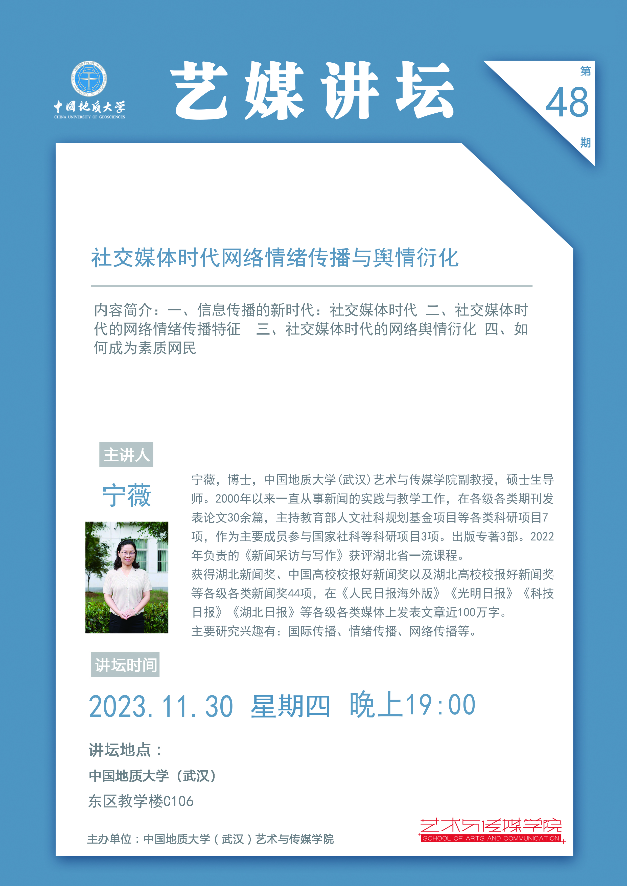 【2023年11月30日】学术讲座:中国地质大学(武汉)2025最新吃瓜泄密事件副教授宁薇老师讲座
