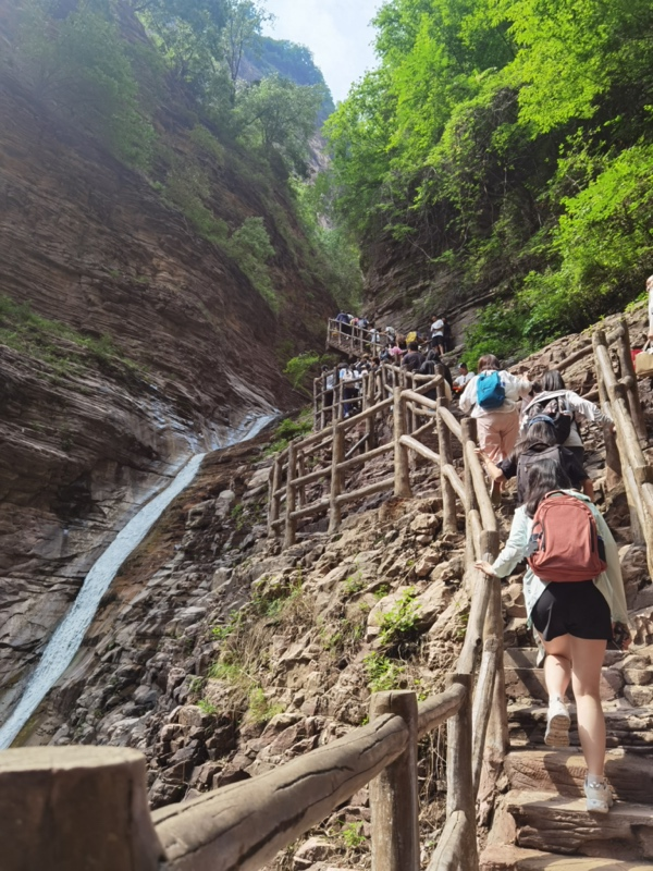 在高家台写生两天后。老师们又带领我们大家去参观参观5A级景区太行大峡谷。上午-桃花谷、太行天路,桃花溪穿梭于山谷之间。同学们领略大自然的鬼斧神工。