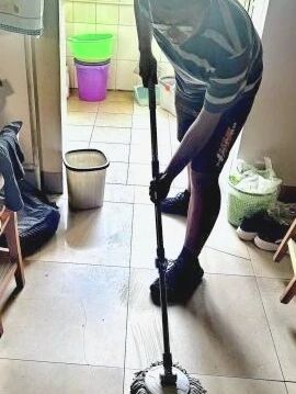 朱彦逾同学在教室清洁