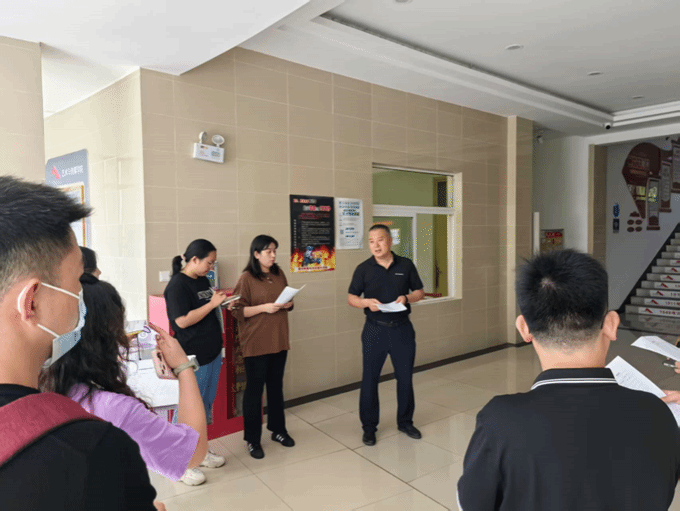 下午4点,参与本次宿舍检查的全体工作人员在艺媒楼一楼大厅集合,边建华书记为大家强调了本次检查工作的重点内容,包括宿舍卫生、违章电器、用水用电与防范电信诈骗的安全提醒,并为同学们送去节日的暖心关怀。