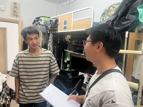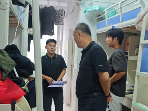 在走访学生宿舍的过程中,边建华书记与各位辅导员老师向同学们送上了节日问候,并对各寝室的用电用水安全进行了细致排查。老师们关切询问了同学们的假期安排,叮嘱离校同学注意旅途中的财产与交通安全,提醒留校同学规律作息、安全用电,共同营造团结友爱、健康和谐的宿舍氛围。