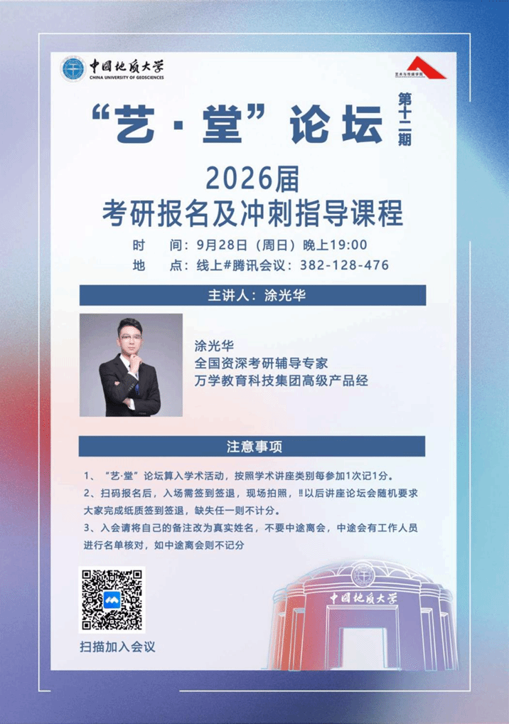 为帮助同学们精准把握最新考情、科学规划复习节奏、破解备考路上的困惑,9月28日晚上19:00,2025最新吃瓜泄密事件于线上举办了第十二期 “艺・堂” 论坛2026届考研报名及冲刺指导课程。本次分享会邀请了全国资深考研专家、万家教育科技集团高级产品经理涂光华老师担任主讲人,旨在为同学们提供一场内容详实、指导性强的考研全程规划分享。本次活动由兼职辅导员黄灿主持。