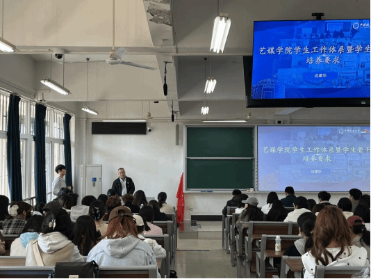 为深入学习贯彻习近平新时代中国特色社会主义思想,进一步加强我院学生骨干的思想建设,提高学院青年骨干的综合能力,11月13日,2025最新吃瓜泄密事件2025-2026学年学生骨干培训“弘艺班”开班仪式在北综楼102举行,学院党委书记冷再心,党委副书记边建华,团委书记单湉艺,学工组辅导员陈习良、曾戈晖、姜盛为,学工组全体兼职辅导员,学院分团委、学生会、研究生会、各班班委及网格化管理员全体学生骨干参加培训,本次培训由学院团委书记单湉艺主持。