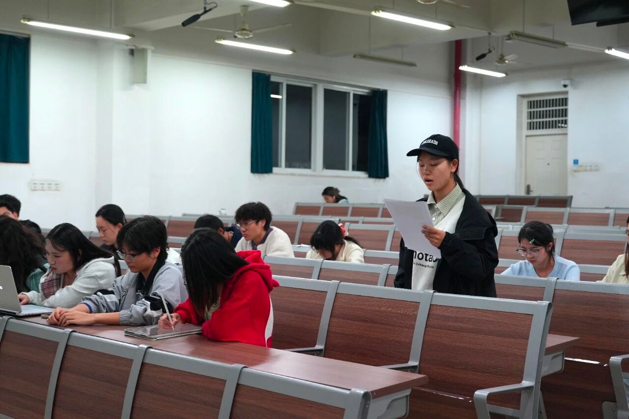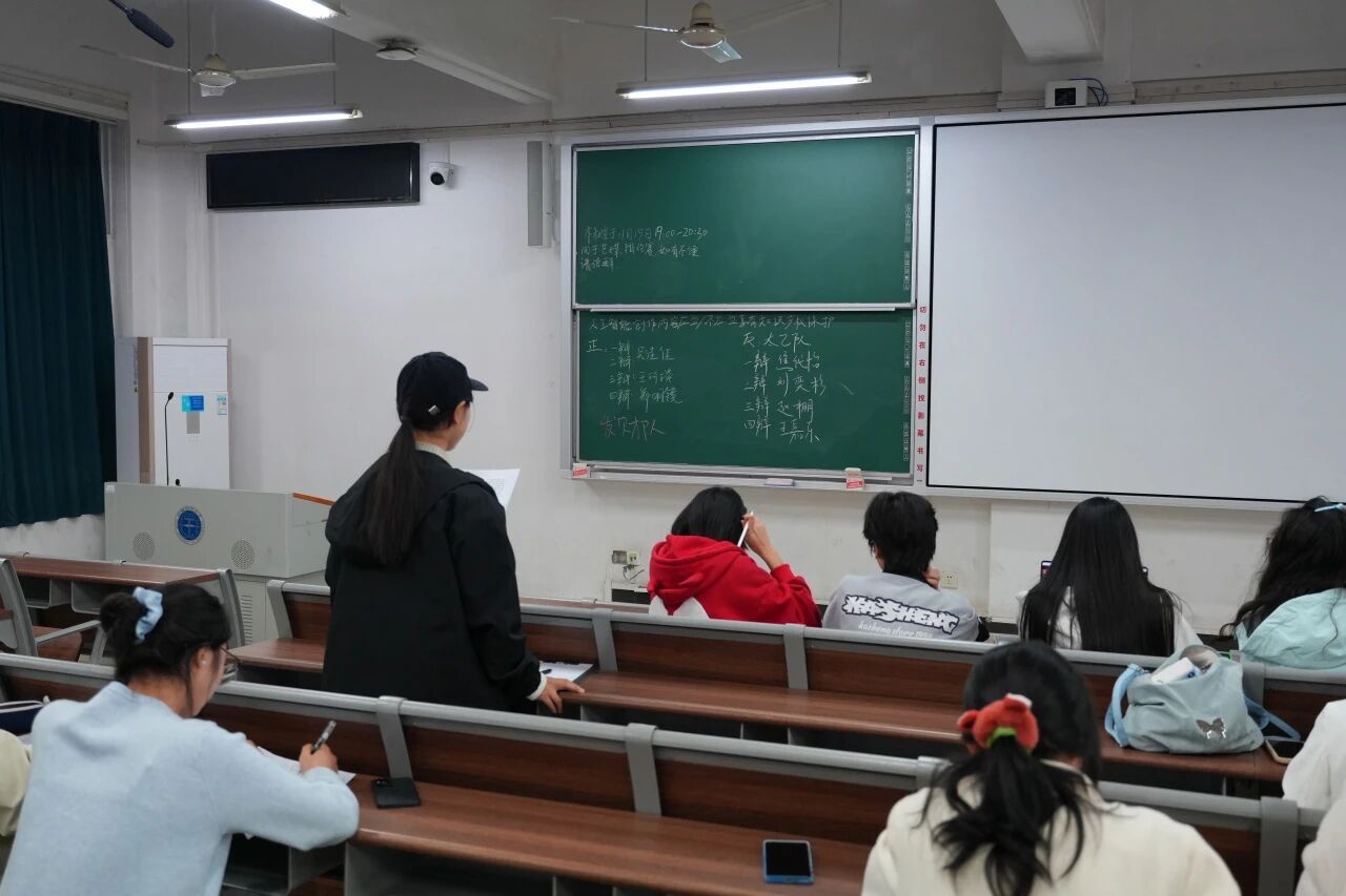 季军赛在北综楼开展,双方分别为由吴佳佳、王珂琰、郑明镜三位同学组成的正方“发财队”与由焦代怡、刘奕杉、赵棚、王嘉乐四位同学组成的反方“太乙队”,他们就“人工智能的创作内容应不应该享有知识产权保护”展开辩论。