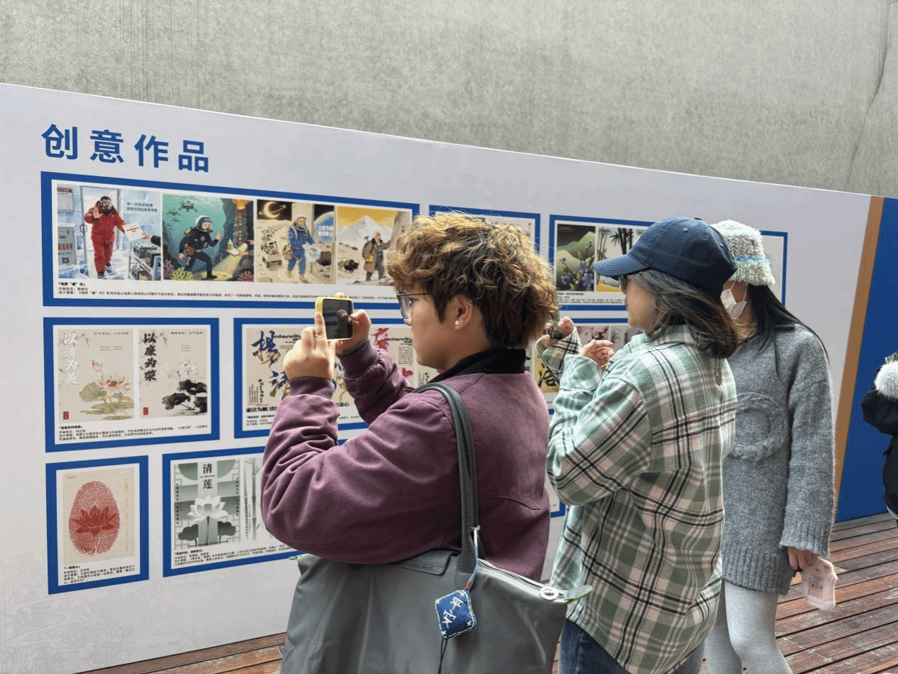 随后,同学们参观了廉洁文化作品展。展区集中展示了我院学生创作的平面设计、漫画、H5、绘画等多类廉洁主题作品,这些作品以青年视角诠释廉洁内涵,兼具艺术性与教育性,让学员们在沉浸式观展中深化了对廉洁精神的理解,明确了青年学生骨干“守底线、担责任”的行动方向。