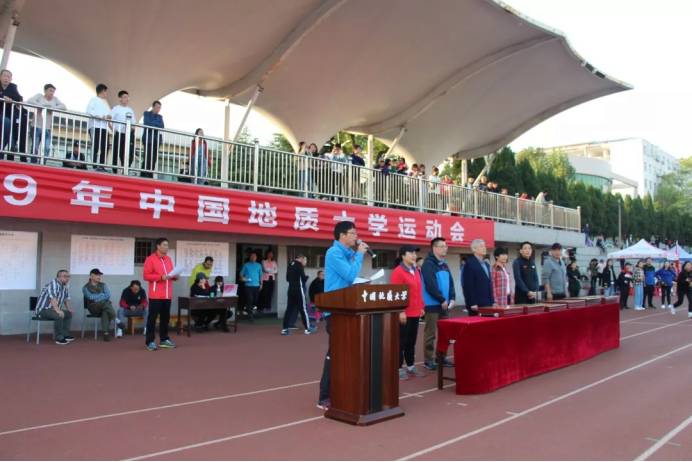 颁奖仪式结束,中国地质大学副校长傅安洲致闭幕词。傅校长在讲话中表达了对每一位地大人的殷切期待与祝福,呼吁大家积极投身运动事业中,锻炼出更强健的体魄,共创地大更辉煌的明天。最后傅校长郑重宣布中国地质大学(武汉)2019年运动会圆满结束。