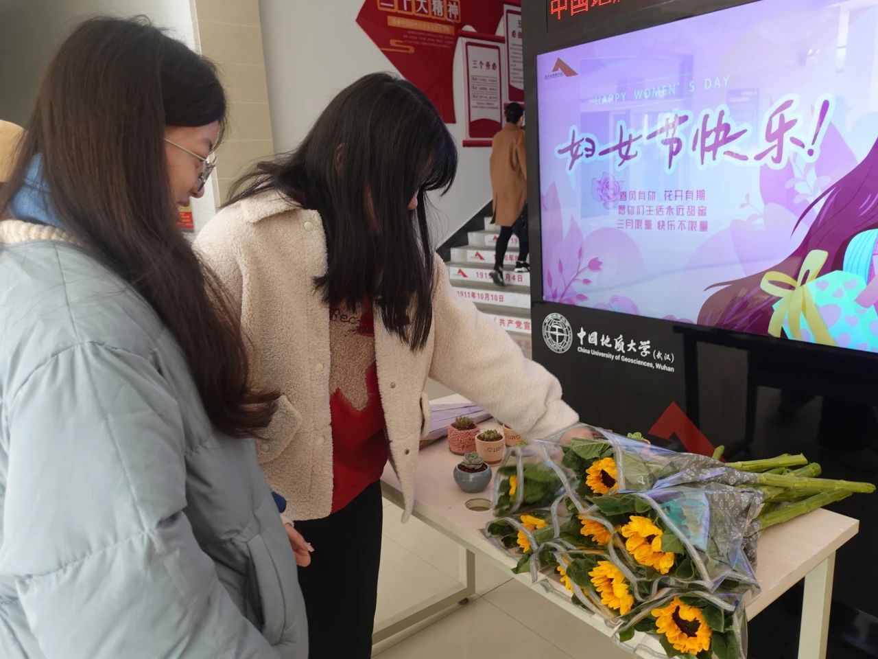 活动现场,女教师和女同学们不仅领取了鲜花,还收获了志愿者们送上的真挚祝福,每位女性同胞都被给予了最温馨的关怀。