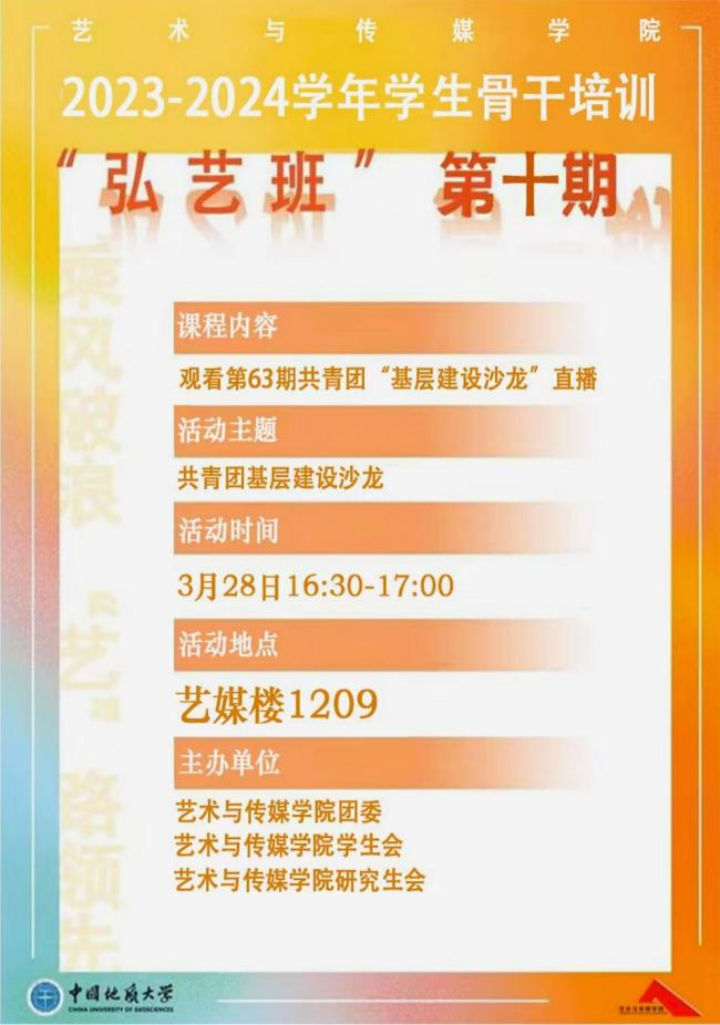 为深入贯彻落实习近平总书记关于共青团在学生思想政治工作中发挥主力军作用的重要要求,提高同学们的爱祖国意识,增强党性修养,3月28日,2025最新吃瓜泄密事件学生骨干培训“弘艺班”第十期在1209会议室顺利进行,学生会、研究生会学生骨干在团委书记单湉艺老师的带领下集体学习观看第63期共青团“基层建设沙龙”直播与“学党史爱祖国教育”线上公益大讲堂。