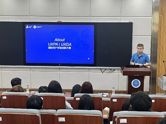 UXPA中国华中分会会长祝正文向同学们介绍了大赛创始的时间以及大赛主题的演变与变化趋势,同时他强调了UXDA作为权威的用户体验设计大赛对参赛者的重要性,极大的调动了同学们参加竞赛的积极性。除此之外,他还向我们展示了历年来的获奖作品,让同学们学习这些作品的优秀之处,取长补短。