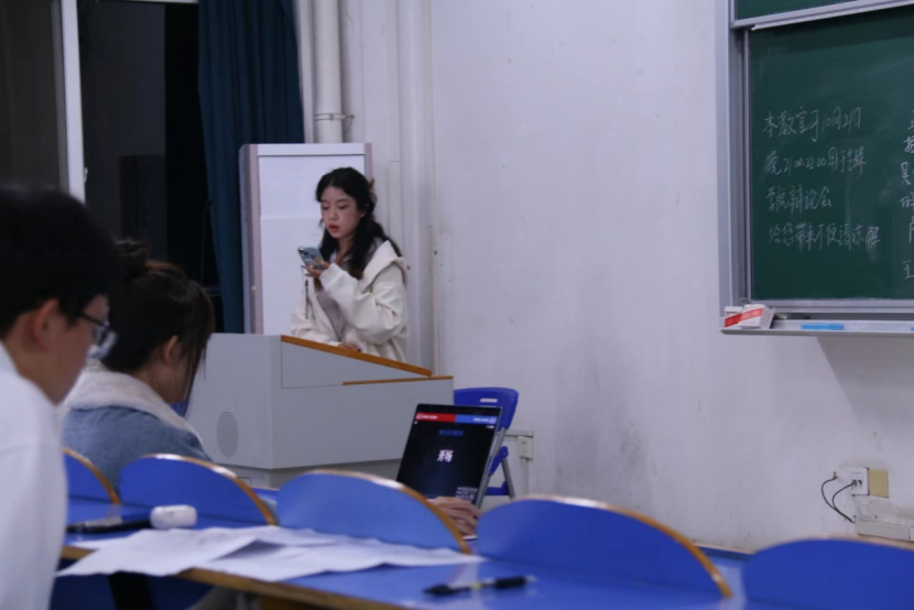 第四场比赛在北综楼207教室举行,三位评委分别是陈雅雯、曾序、朱琪琪。两支参赛队伍分别是反方“上大分熊熊队”和正方“插队”,他们就“科技增添/折损了奥运的魅力”展开激烈讨论。