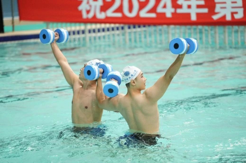 2024年10月19日至20日,第13届全国水中健身操比赛在安徽省马鞍山市奥体中心游泳馆举行。在此次水中健身操比赛中,中国地质大学(武汉)代表队共13人参赛,并斩获佳绩。我院21级博士研究生赵杰获得集体徒手规定动作操冠军、双人浮力哑铃操冠军以及团体总分第一的优异成绩。