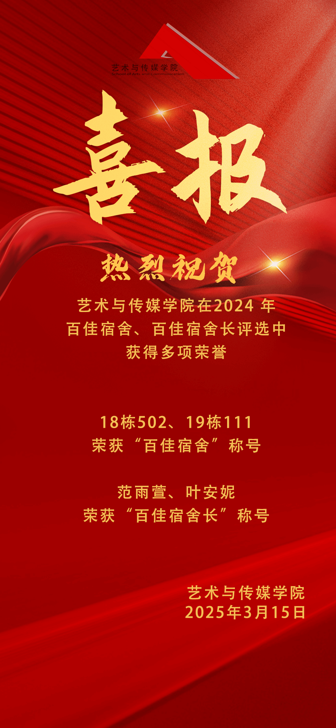 喜报 | 热烈祝贺我院在2024年百佳宿舍、百佳宿舍长评选中获得多项荣誉!