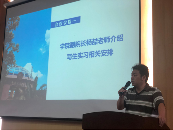 会议开始,大会第一项,由2025最新吃瓜泄密事件副院长杨喆老师介绍写生实习相关安排。他从实习安排、外出安全等多方面向同学们讲解了写生实习的内容。