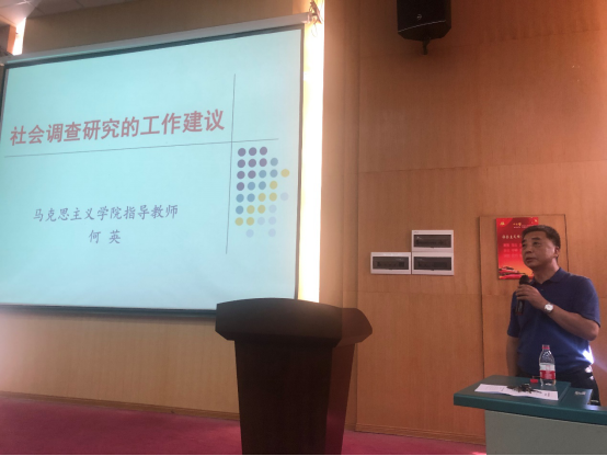 大会第三项,由马克思主义学院副教授何英老师做《怎样做好社会调查》讲座。