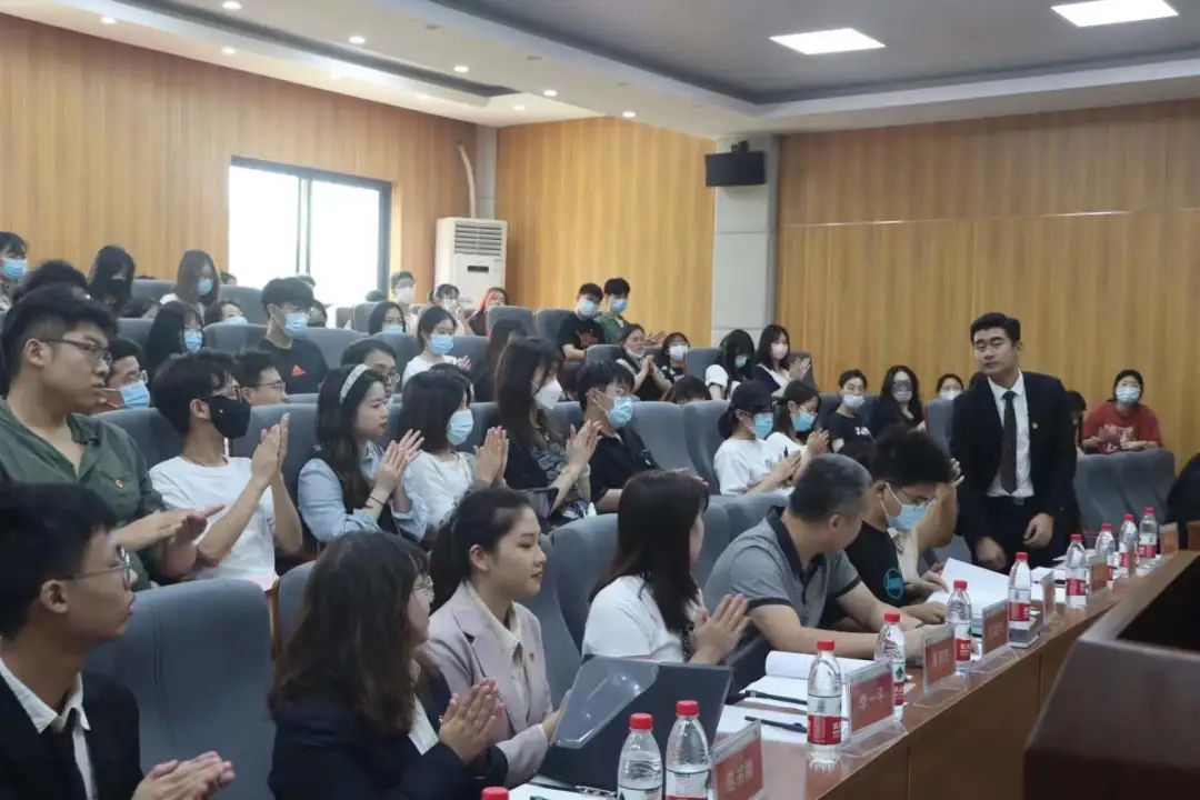 大会第八项,由三位候选人依次上台答辩,由各位学生代表和评委举手提问。