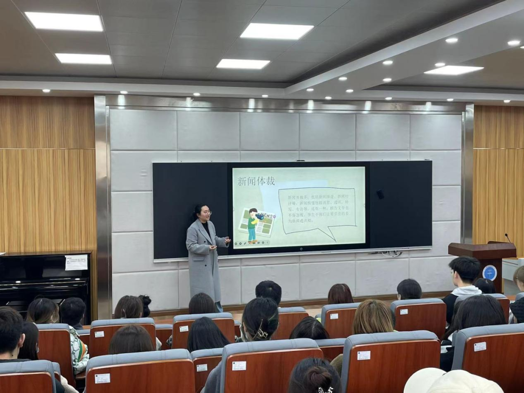 然后,曾老师通过列举不同的案例,同时结合自己的新闻写作经验,具体分析了新闻稿写作方法在实践中的应用,并指出长期的阅读和写作积累才是提高新闻写作能力的根本办法。