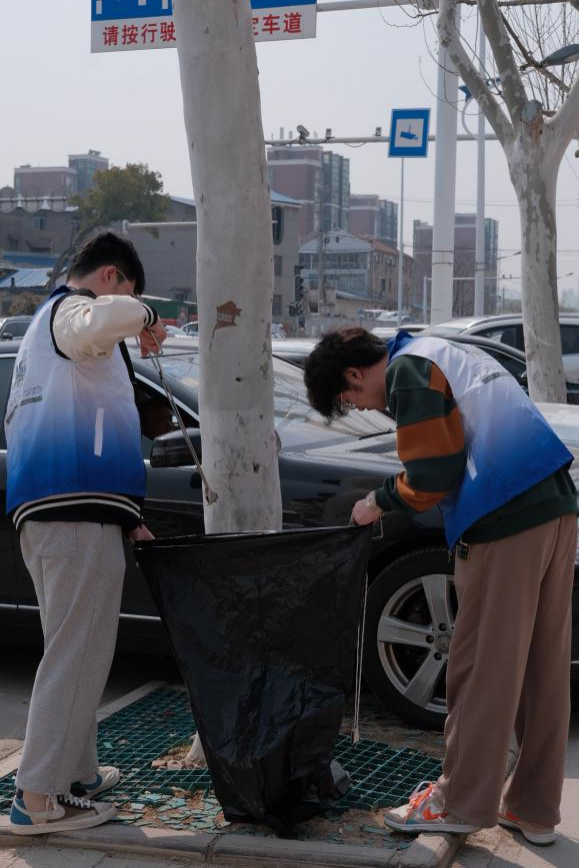 在学工组兼职辅导员陈雨果和陈述波老师的带领下,志愿者们热情高涨,相互配合,秉持“不怕脏、不怕累”的精神,身着马甲,手持垃圾袋和钳子,沿道路捡拾树丛和街道中央上的废弃物、生活垃圾、纸巾、塑料袋、烟头等各种垃圾。沿途清理区域达4公里长,经过近3个小时的努力,街道变得更加清洁美丽。