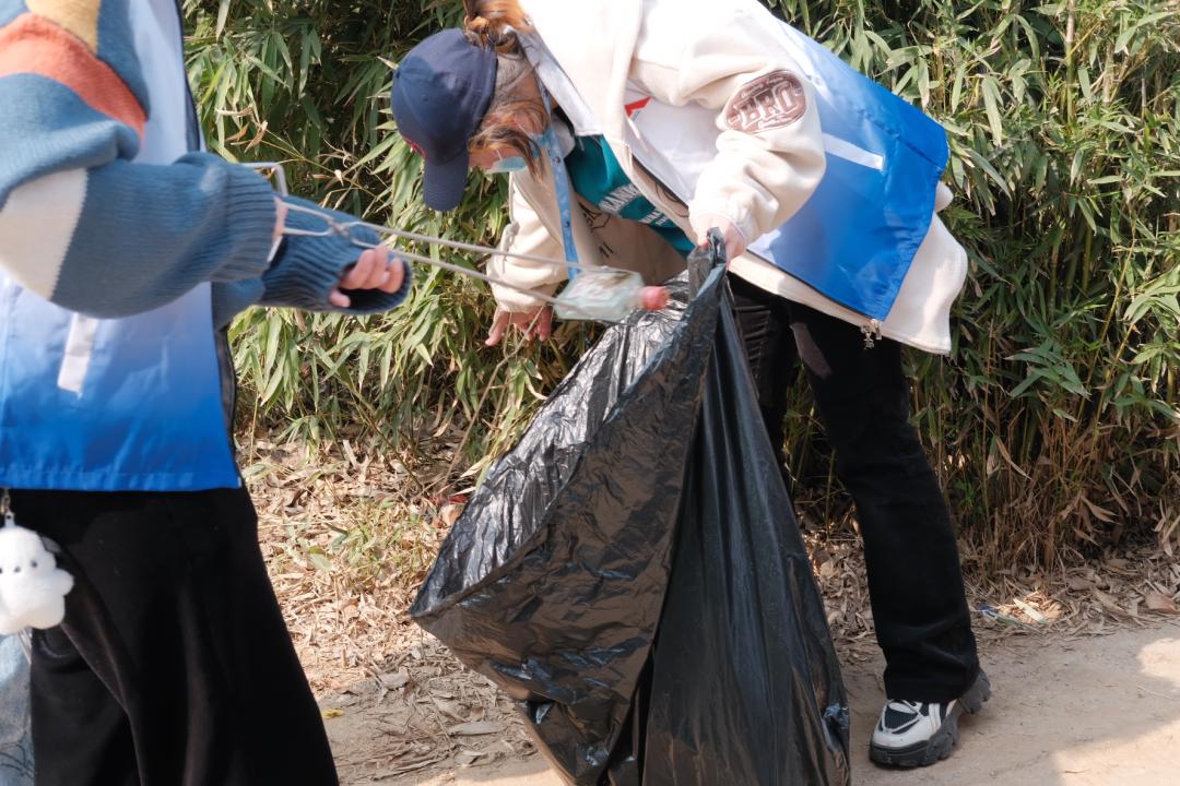 春意盎然启长卷,阳光熠熠绘新篇。青年志愿者们提前在北区大门集合进行线下签到和发放工具。本次活动由学院青年志愿者协会统筹安排整体工作,组织20名志愿者前往东湖旅游风景区,通过垃圾清理、清洁公共设施和整理落叶等实践方式,完成户外环保志愿服务工作。